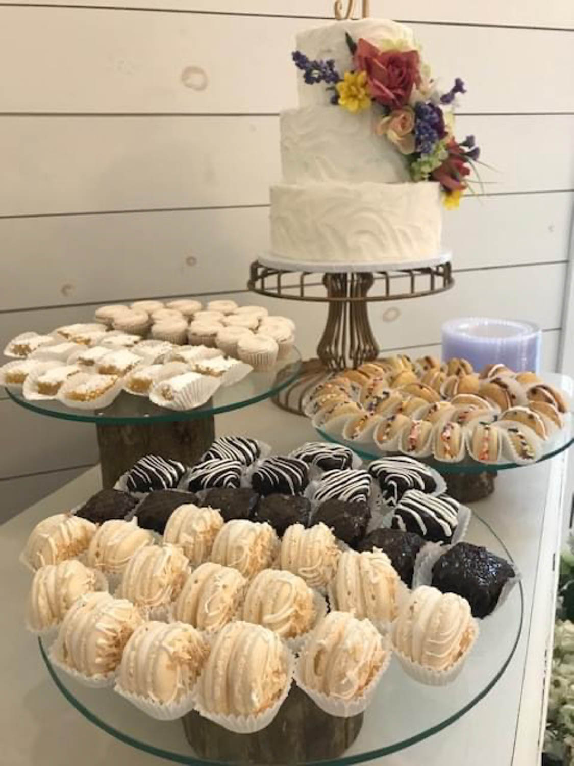 Then, they invite you to monthly cake tasting events in Greenville and Anderson. Alternatively, they offer complimentary sample packs for weddings with 100 or more guests. You can try flavors at home until you feel confident. In addition, they provide a boxed anniversary cake for later, with thawing instructions. Furthermore, they leave a container at your event for cake cutter access and a box for leftovers.